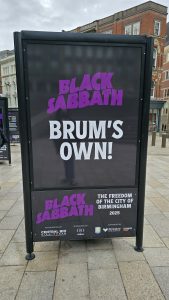 The outdoor Black Sabbath Photography Exhibition in Victoria Square was a proper treat. “Black Sabbath Brum’s Own” greets you in those classic black and purple colours, and it’s available 24/7 which is brilliant for fans who might be exploring at odd hours.